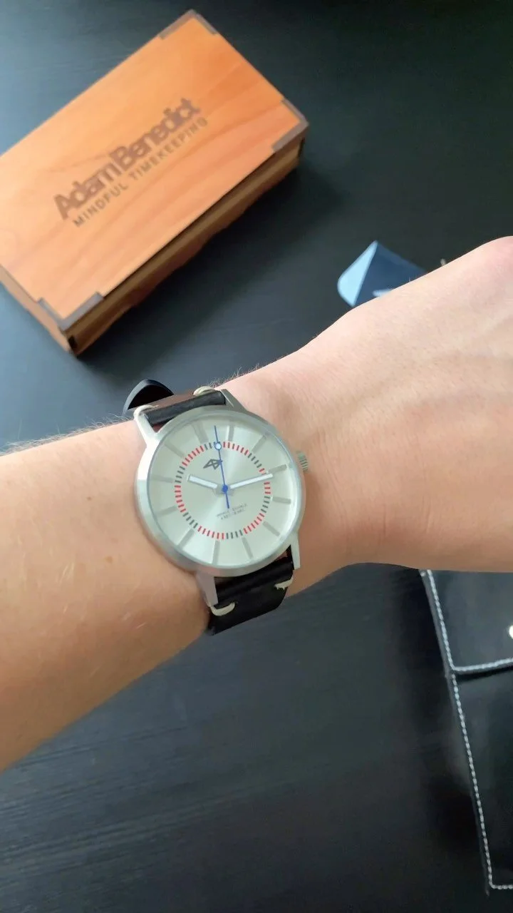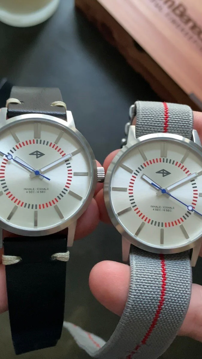 While nodding to family and vintage watch aesthetics, our original design motif was created to inspire wearers to refocus on their breath and on the present wherever and whenever they check the time.